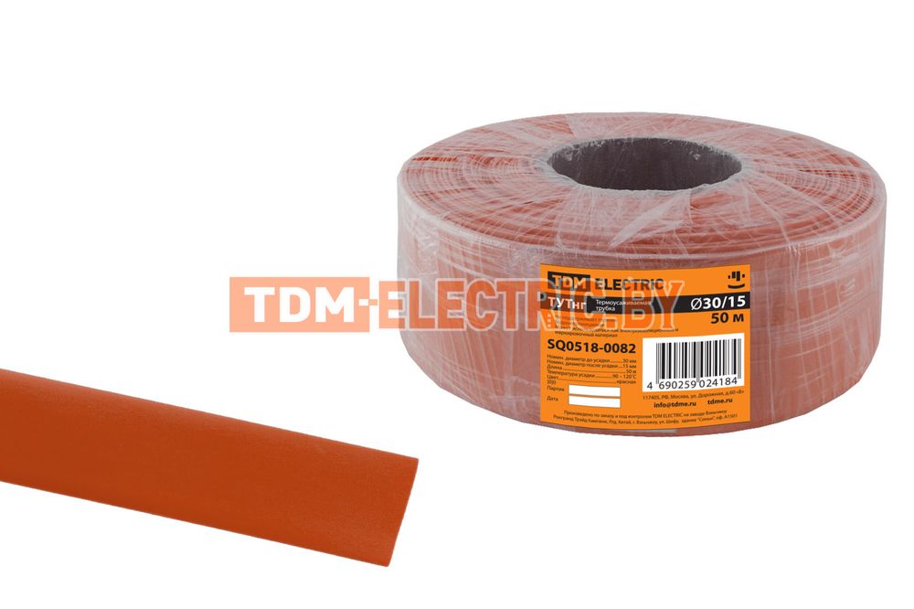 Термоусаживаемая трубка ТУТнг 30/15 красная (50 м/ролл) TDM-SQ0518-0082
