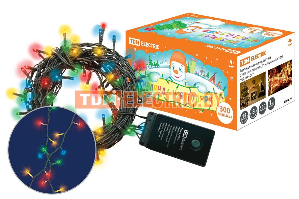 Гирлянда новогодняя, МГ 300, 220 В, многоцветная, 15 м, 8 режимов TDM SQ0361-0007